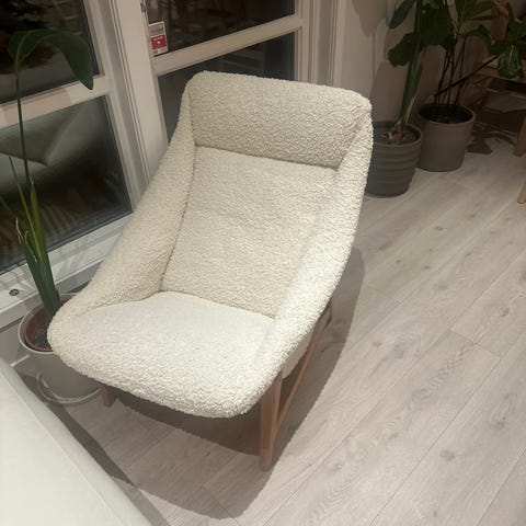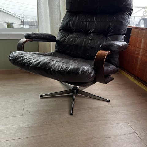 Stolen er hel og pen i skinnet, skammelen har dessverre begynt å rakne i sømmen (se bilde).