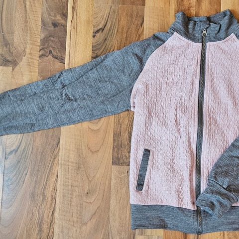 Brukt av ett barn. Børstet ull. Bukser har gått opp i sømmen på det ene beinet. Jakken kan selges separat for 150