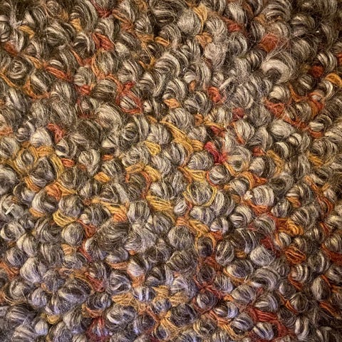 Tykt strikket/heklet teppe i ullblanding