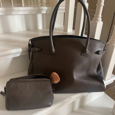 Selger en helt ny og ubrukt Porchet-veske i elegant taupe farge. Vesken har aldri vært i bruk og original prislapp henger fortsatt på.