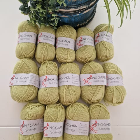 Vikinggarn Sportsragg totalt 7 nøster i grønn (farge 532, parti 1511) og hvit (502, 1332) selges rimelig etter oppryddikg i garnlager :-)