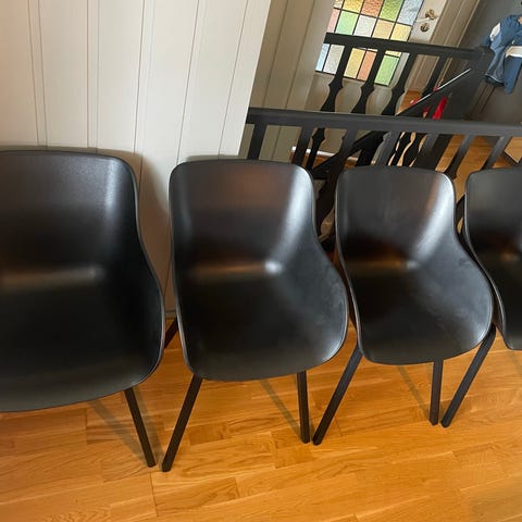 6 hvite spisestoler med stålben selges samlet.