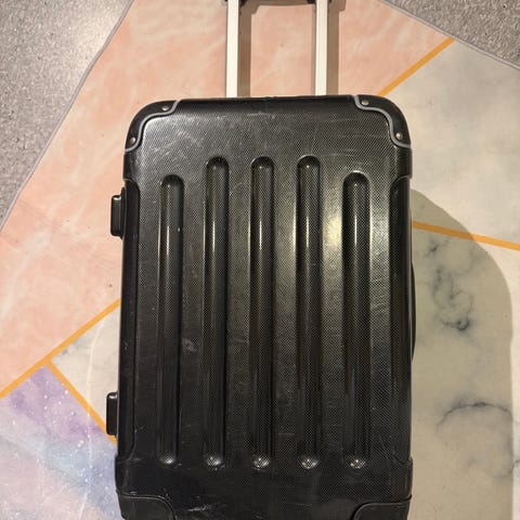 Lettvekts plastkoffert. Har vanlige bruksmerker utvendig etter reiser, men fungerer perfekt.