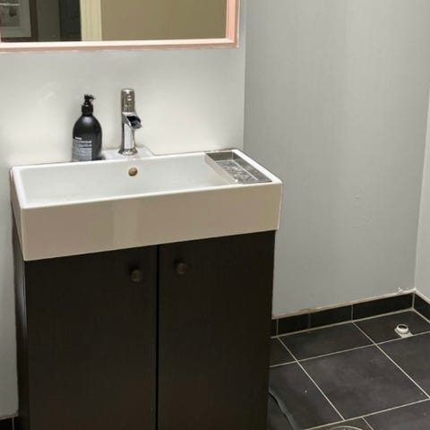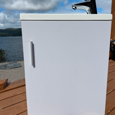 Servantskap i sort og hvit farge. Produktet har et minimalistisk design med håndtak i metall. Passer til baderom for oppbevaring under servant.m/2 hyller.mål B47 D30 H60