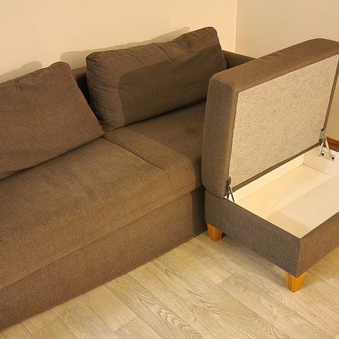 Pent brukt sovesofa i dempet blått. Mykt og deilig stoff. To tilhørende pynteputer følger med.