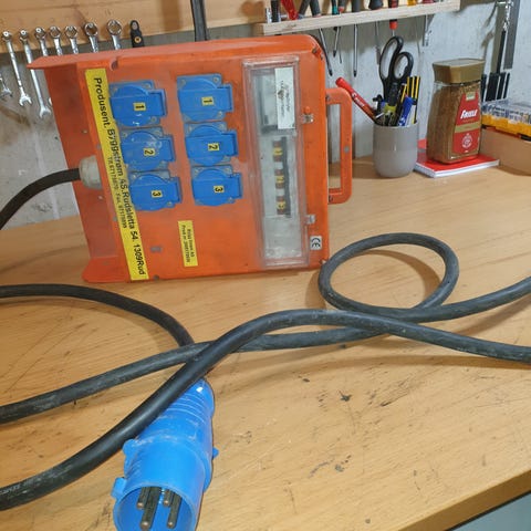 Skjøteledning, ikke jordet med fem støpsler og bryter