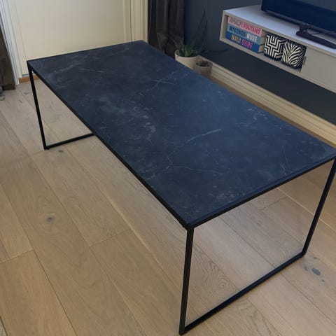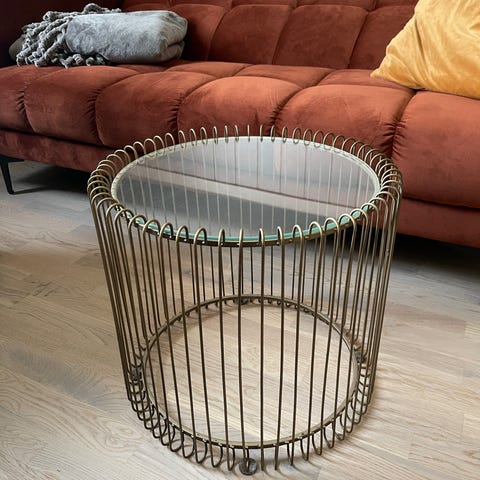 Side/sofabord fra IKEA i sort og brunt med messingdetaljer.