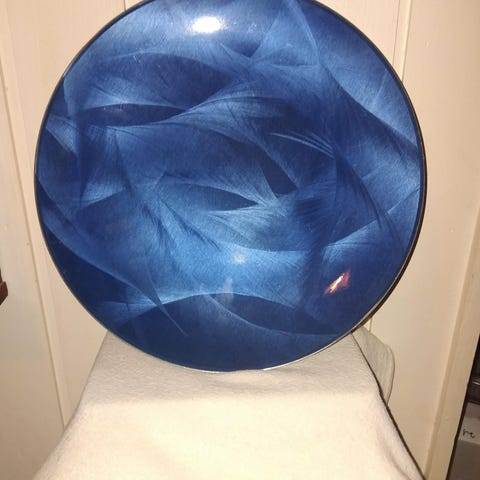 Nydelig blått emaljefat fra Catrineholm. 26 cm i diameter. Blankt og fint. Emaljen er hel og fin.