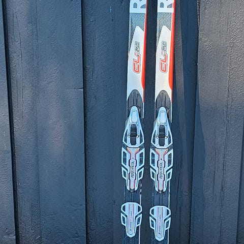 Helt nye Rossignol Rskin felleski. Lengde 196 cm. Kjøpt til ei på 70 kg og 170 høy. Skiene er brukt ca 300 meter. De har feil spenn og er for stive.