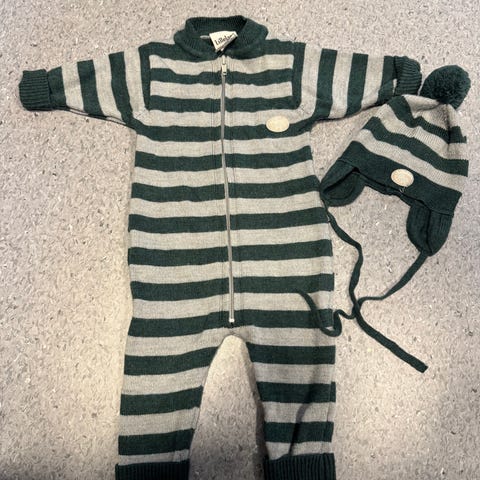 Nydelig ullgenser med lue i det jeg har erfart er str 62-74.