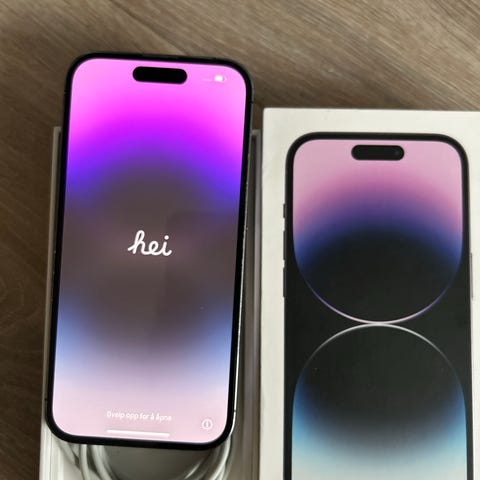 Apple iPhone 14 Pro mobiltelefon med 128 GB lagringskapasitet. Enheten har en skjerm med Always-On Display-funksjon og en trippel kameraoppsett på baksiden. iPhonen er pent brukt. Det er dog problemer med ladeporten. Den fungerer ikke ordentlig. Lades ikke med vanlig lader. Har derfor bare brukt mag-safe lader eller trådløs lader til denne. Kan være en enkel fiks, det vet jeg ikke. Selges derfor billig uten noen form for garanti.