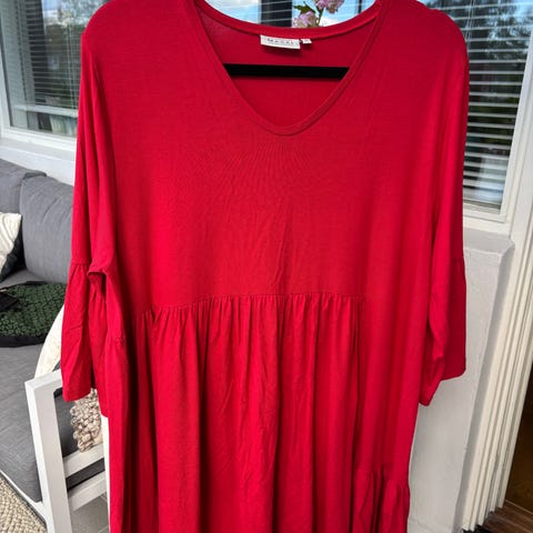 Kjole fra Masai. 100% viskose, lekkert tynt stoff og lett innsving i midjen gir en veldig fin passform at passformen. Fin både til hverdags og fest. Fukt noe få ganger.