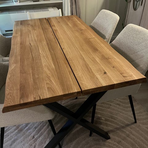 Veldig pent brukt spisebord kjøpt i April 2025, selges pga flytting, har oliert det og allt bare brukt gjennomsiktig plastduk over