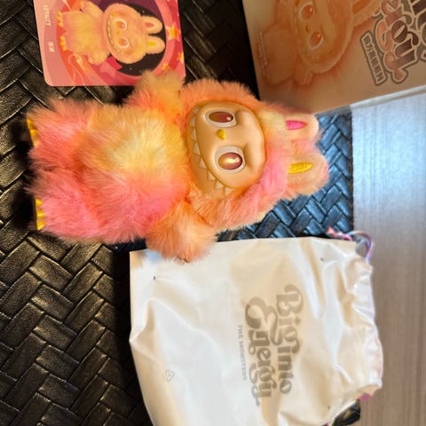 Zimomo, en labubu med hale. Dette er ikke original. Må hentes på Smeaheia