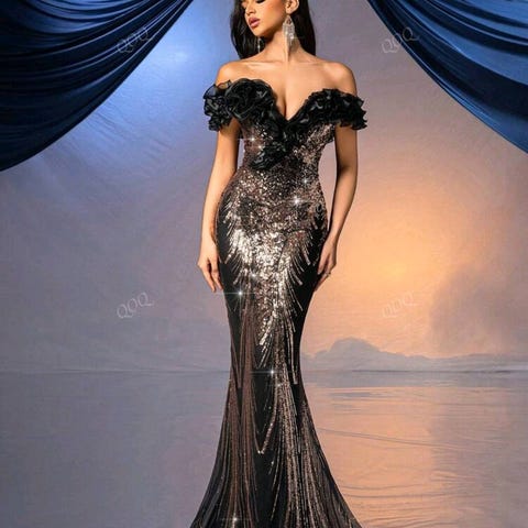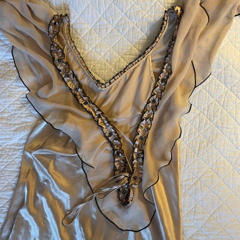 H&M hverdagskjole i svart satin materiale, designet for kvinner i størrelse 40. Kjolen har langermet design og dekorative detaljer på forsiden.
