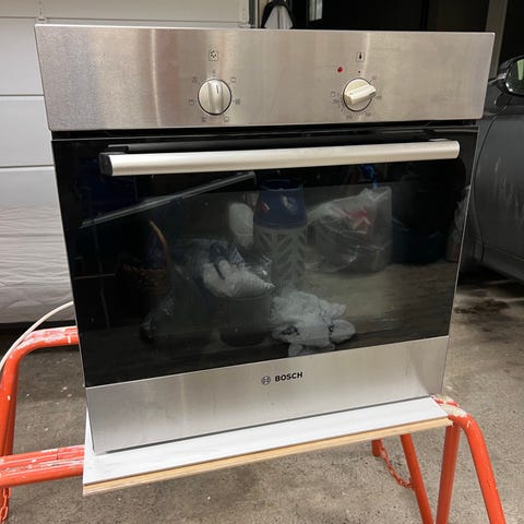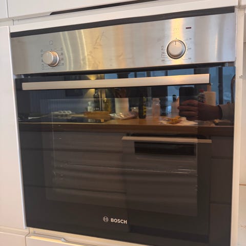 Bosch Varmluft ovn i rustfritt stål. Ovn med varmluftsfunksjon som gir jevn varmefordeling. Passer til integrering i kjøkkeninnredning. Kontrollpanel med dreiebrytere og digitalt display for temperatur- og funksjonsinnstillinger