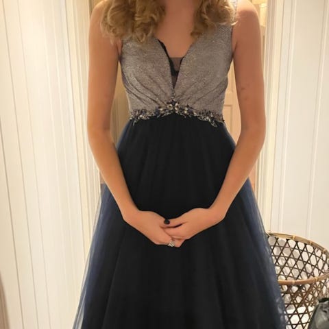 Pen festkjole Pagani i navy blå farge, størrelse 8 - passer S/M