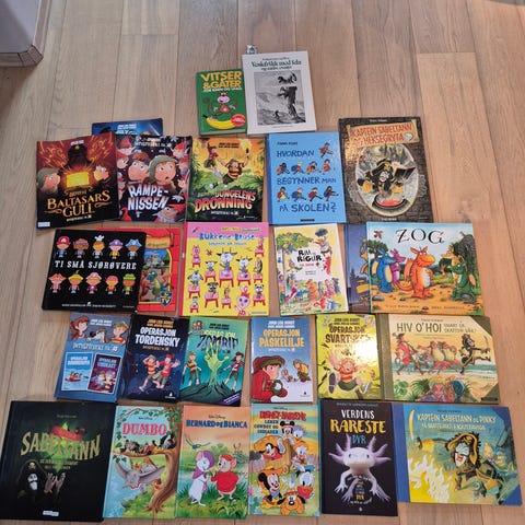 Samling av ulike tegneserier med forskjellige titler og utgaver.
