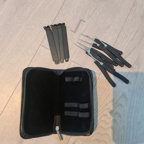 Låsesett til å lære å bli låsesmed eller bare ha det gøy som hjernetrim.