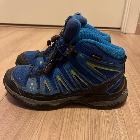 Salomon fotturstøvler i størrelse 39, grå farge. Egnet for fotturer og utendørs bruk. Støvlene har solid såle for godt grep på variert underlag.