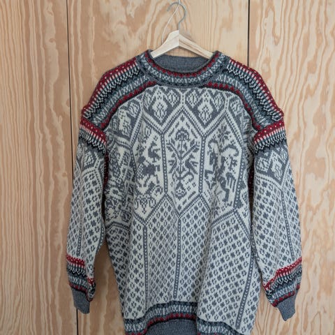 Helt nystrikket genser i mønsteret Regnduft strikket i garnet Sterk selges pga at størrelse M ble for liten til den som skulle ha den.
