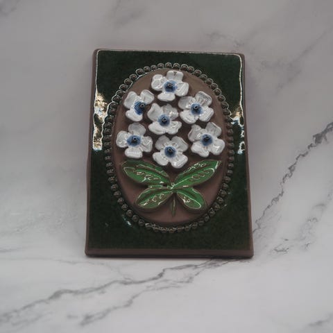 Vintage JIE GANTOFTA keramikkrelieff med blomstermotiv.