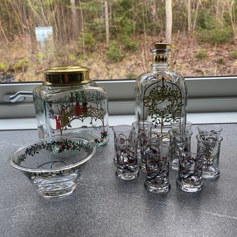 Holmegaards juleflaske og juledrammeglass