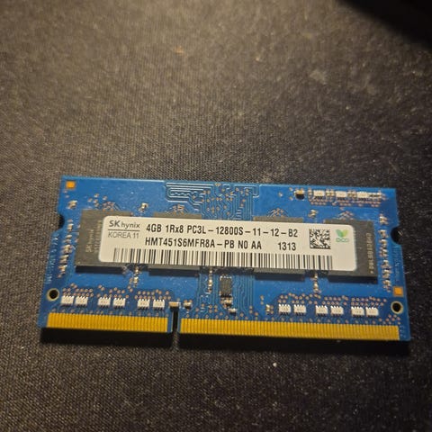 SK hynix 8GB DDR3 RAM-modul med 1600MHz hastighet i SO-DIMM format. Passer for bærbare datamaskiner som støtter DDR3-minne.