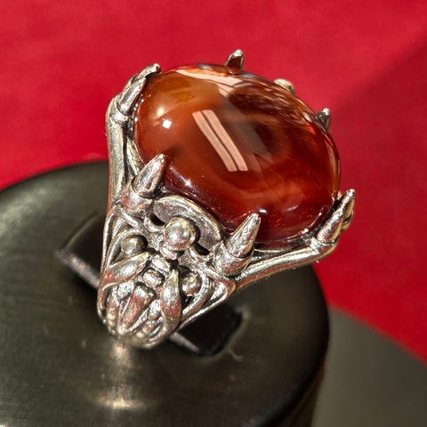 Vintage sølvring pyntet med en naturlig sjelden øye agat.