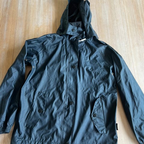 Didriksons barnejakke i størrelse 164, unisex. Jakken er blå og laget av akryl. Den er 100% vanntett og har hette, glidelåslukking og justerbare mansjetter.