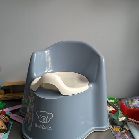 BabyBjörn Potte i blå farge med hvit innerskål. Pent brukt og har masse bruk igjen til neste potte trener.