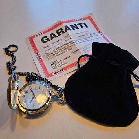 Klokken er pent brukt og fungerer som den skal. Leveres i original boks se bilder.