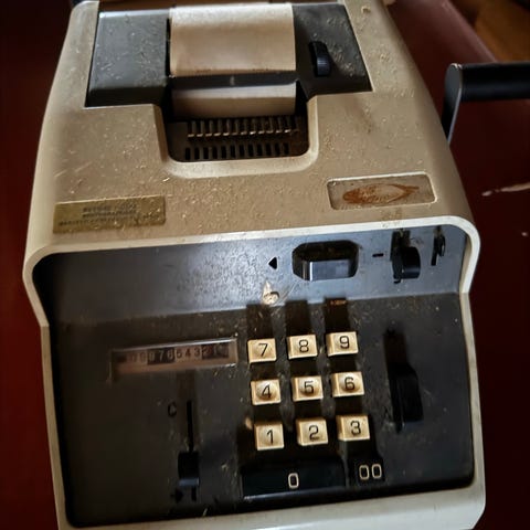 Dette spesifikke designet med det grå plastdekselet og tastaturet (i stedet for de eldre spakene) tyder på at det er en modell fra 1950- eller 1960-tallet. Odhner-maskinene var i flere tiår standardverktøyet for ingeniører, revisorer og bankfolk før de elektroniske kalkulatorene tok over.