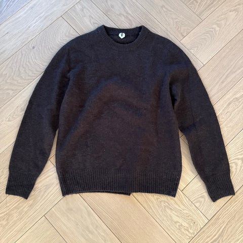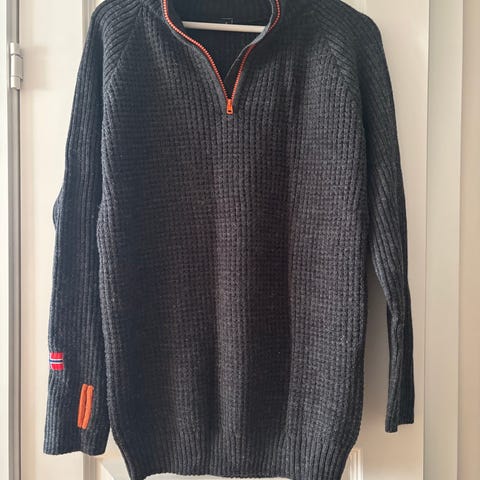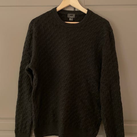 H&M ull genser i størrelse S for herre. Genseren er grå og laget av ull, egnet for kaldere vær.