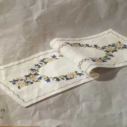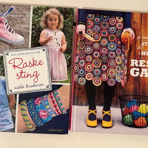 Mønster og garn til å brodere f.eks rundt merket på Fjellrevensekken. (Siste bildet er hentet fra nettet)