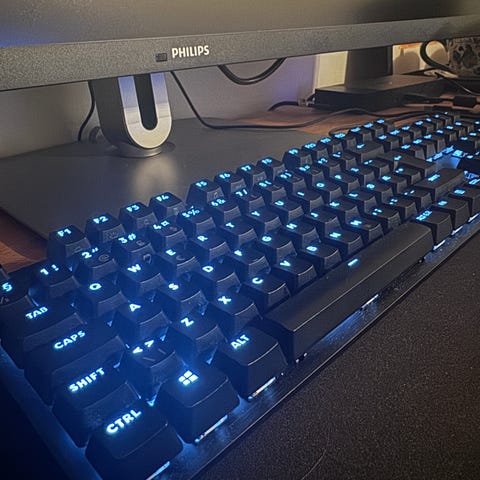 Logitech G915 TKL er et mekanisk tastatur med trådløs tilkobling. Tastaturet har et kompakt design uten numerisk del (TKL), og leveres i svart farge. Det inkluderer en USB-kabel for lading og en trådløs mottaker for tilkobling.