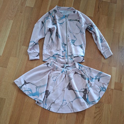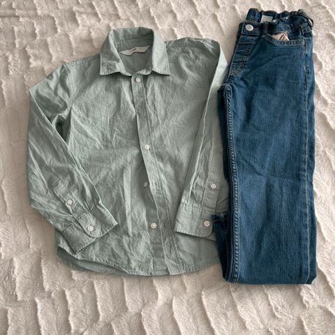 Ubrukt sommersett fra H&M i str. 122/128. Beige med sorte striper.