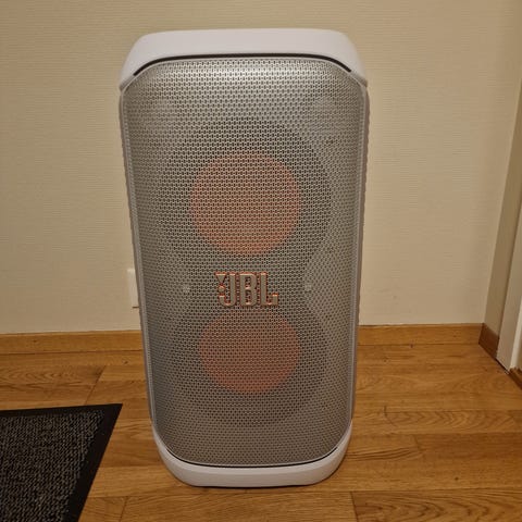 JBL Partybox høyttaler med integrerte lys for visuell effekt. Passer til bruk ved fester og arrangementer hvor lyd og lys spiller en rolle.
