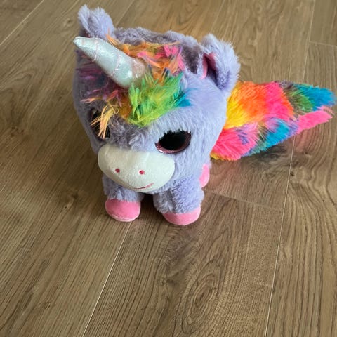 Stor Bamse ca 90 cm . Den har kun bare tatt plass i huset vårt. Så prøver å få rydda unna litt. Den har to små merker bak. Men har lite betydning for relasjonen man kan få for den fine bamsen😊