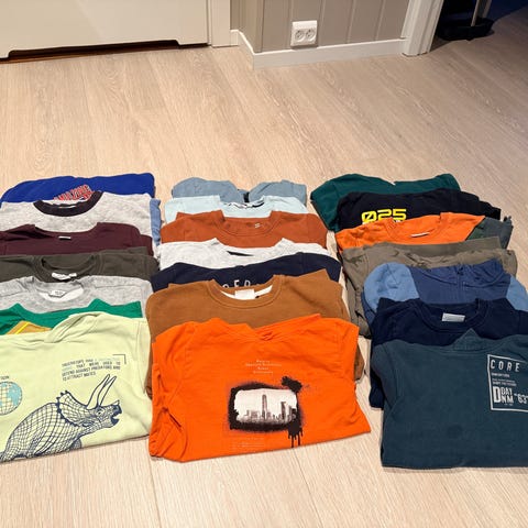 Fint brukte klær i str. 122 og 128, brukt til gutt. Ingen hull eller slitasjer, bortsett fra en bukse som er litt sydd på kneet (se siste bildet). Inneholder merker som blant annet nameit, Levis, h&m, Hummel og Gant. Motiver som Minecraft, sonic og Pokemon.
