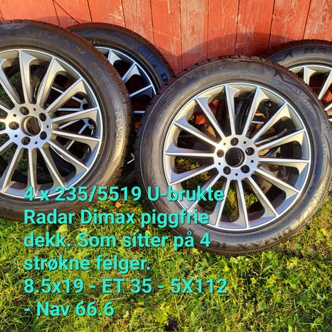 Felgene er litt kantkjørte. Den ene felgen har mista litt farge. Se på bildene om det passer bilen din.