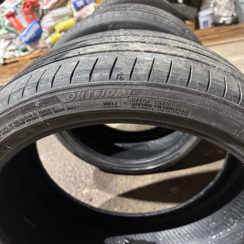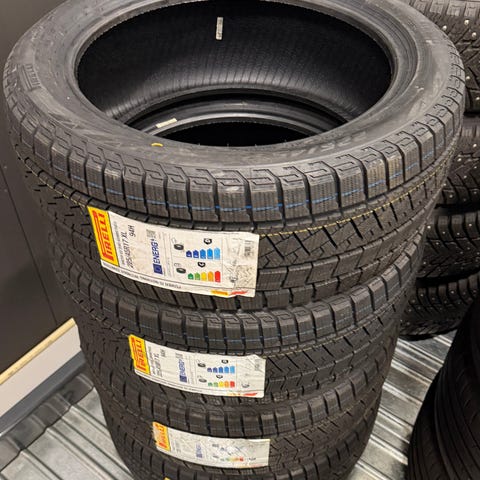 Dekkene er fra 2024 to dekk er 5,5 millimeter. De to andre dekkene er 7,5 millimeter.