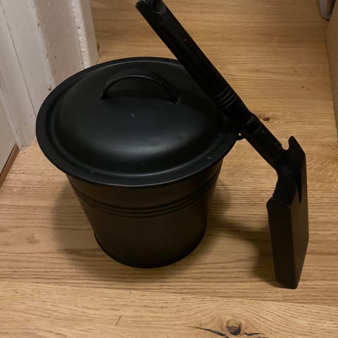 Askebøtte m/ spade kr 150,-. Ikke vært i bruk. Må hentes i Båstad.