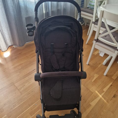 Pent brukt pose til nyfødt - kan festes i bilsete. Grå med cord på innsiden.