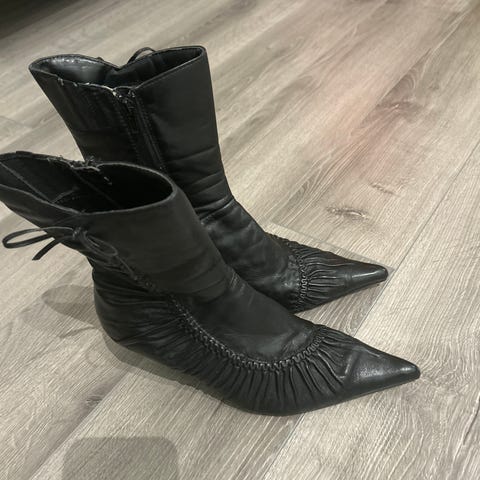 Pene på foten og god passform. Hælene er dessverre blitt litt for høge for meg, og selges derfor
