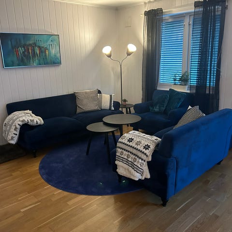 Sofaen er pent brukt og fremstår i god stand. Ingen kjente skader eller slitasje utover normal bruk. Trekket er lyst og gir et rent, tidløst uttrykk.