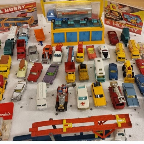 Små lotto av trailere og bus fra Matchbox, corgi og majorette. Hengeren er ikke rett men det passer godt som skala. 1:80 til 1:100 for det jeg klarte å lese under