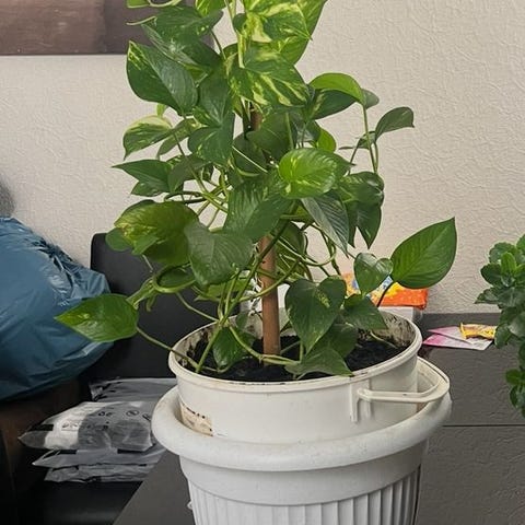 Når det gjelder det botaniske navnet, så tilsier Epipremnum aureum egentlig gylne fargetoner, men denne planten har utviklet en mer spesiell hvit variegering som skiller den ut fra mengden. Det gir den et lysere og mer moderne uttrykk enn den helt klassiske varianten. Dette er en robust stueplante som tåler de fleste lysforhold, og den tørker gjerne lett ut mellom vanning. En perfekt plante for både nybegynnere og samlere som ønsker et friskt blikkfang.