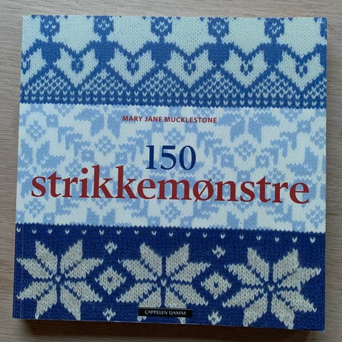 Mary Jane Mucklestone 150 Strikkemønstre bok med samling av 150 forskjellige strikkemønstre. Inneholder mønstre i ulike farger og design for strikking. Egnet for bruk som inspirasjon og veiledning ved strikkeprosjekter.