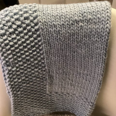 Ikke brukt. Husker dessverre ikke hvilken størrelse den er strikket i.